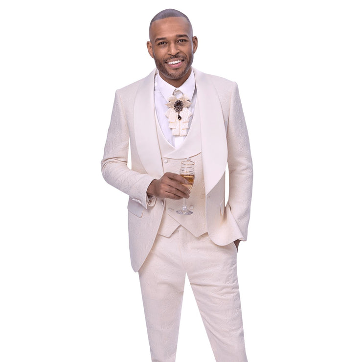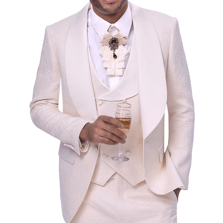 Crinale Collection: Cream 3-Piece Solid Pattern Tuxedo with Fancy Vest