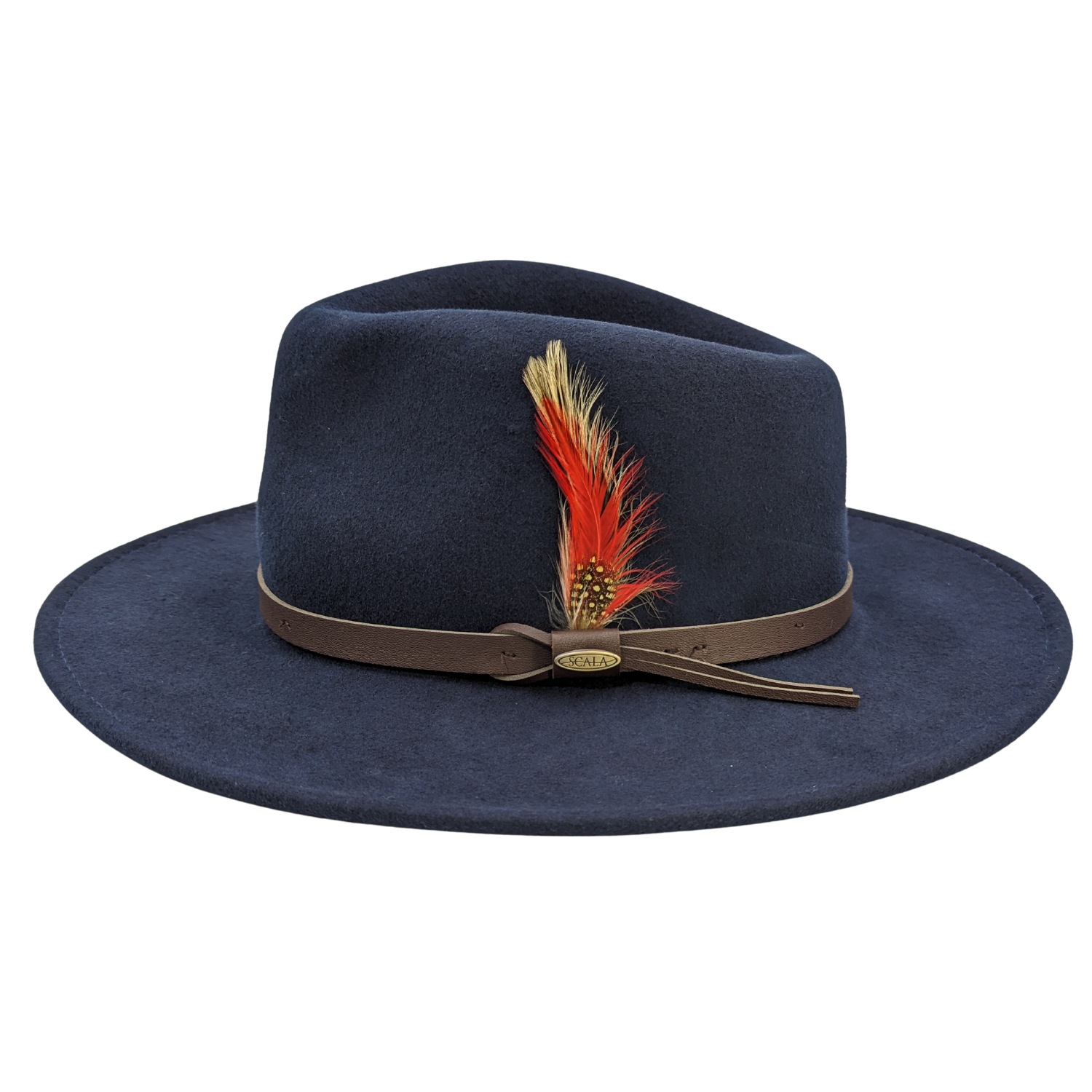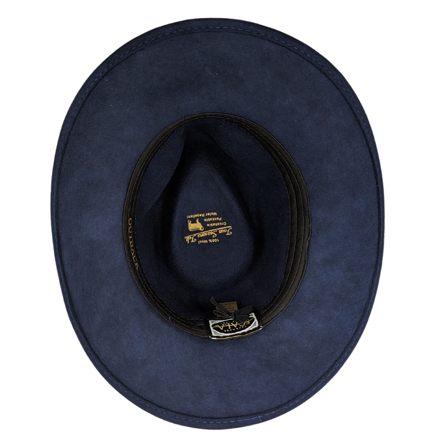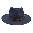Scala Crushable Navy Water-Repellent Wool Felt Outback Fedora with Sweatband