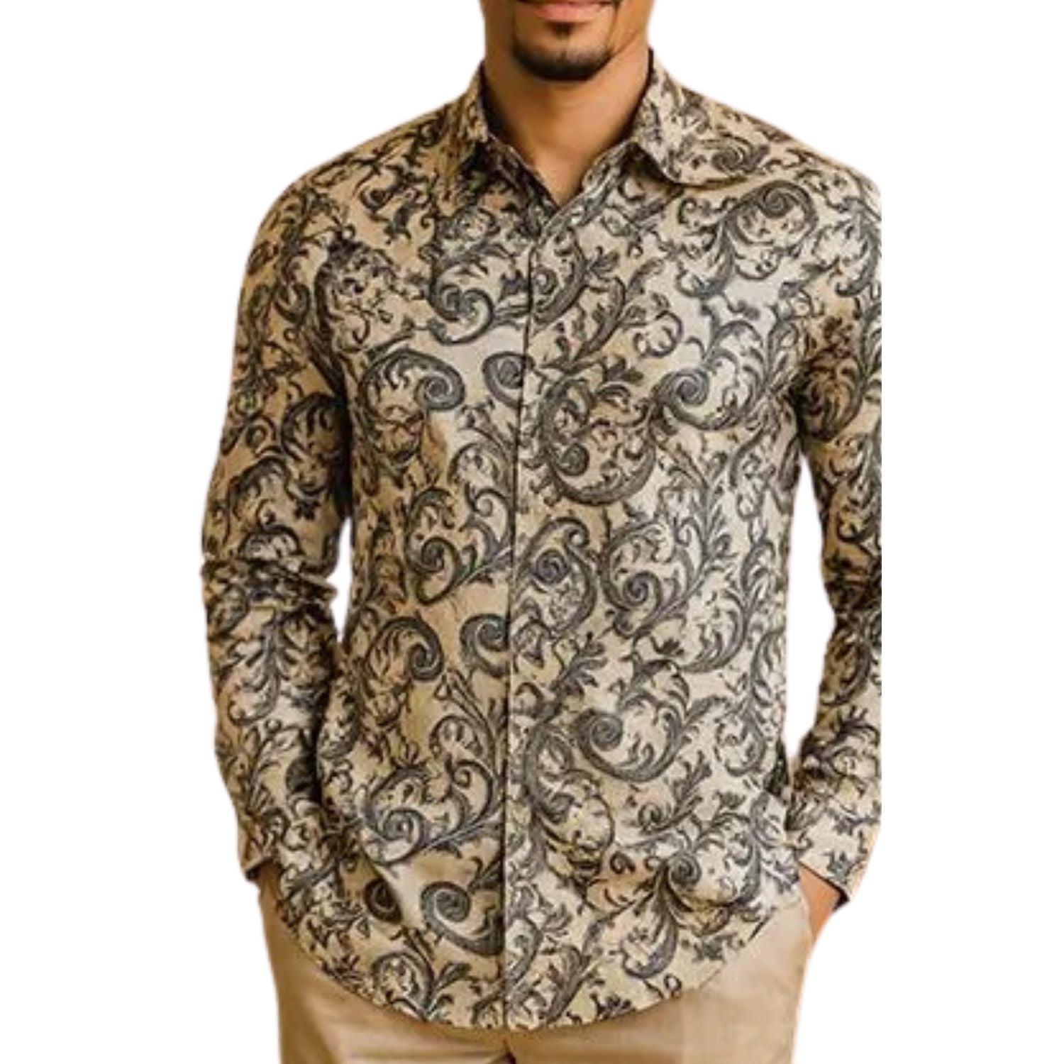 Cygnus Collection: Stacy Adams Tan Scroll Print Long Sleeve Shirt
