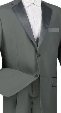 DapperDuo Collection: Grey 2 Piece Solid Color with Satin Lapel Single Breasted Regular Fit Tuxedo