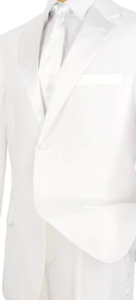 DapperDuo Collection: White 2 Piece Solid Color with Satin Lapel Single Breasted Regular Fit Tuxedo