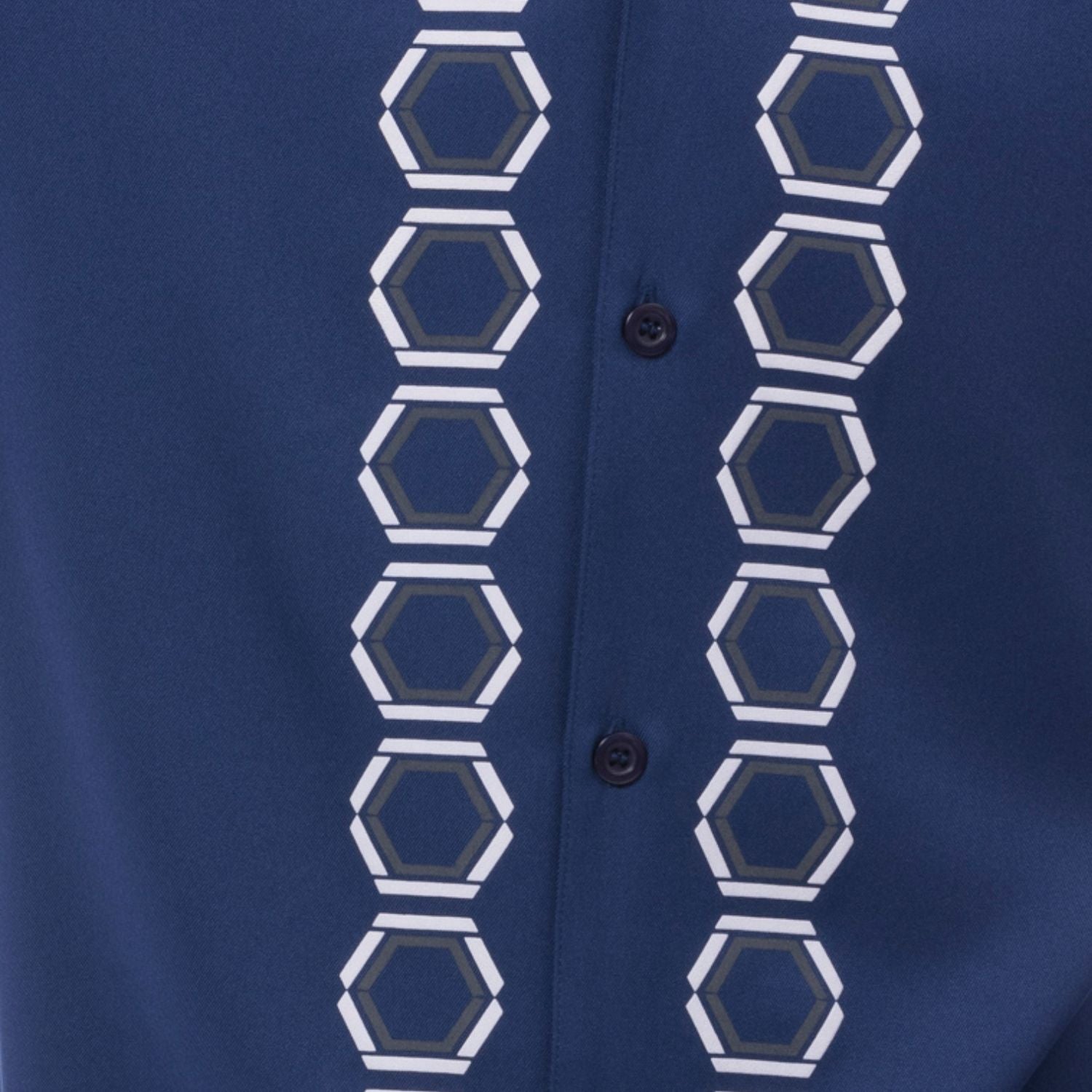 - Navy base color with a bold geometric pattern for a modern look