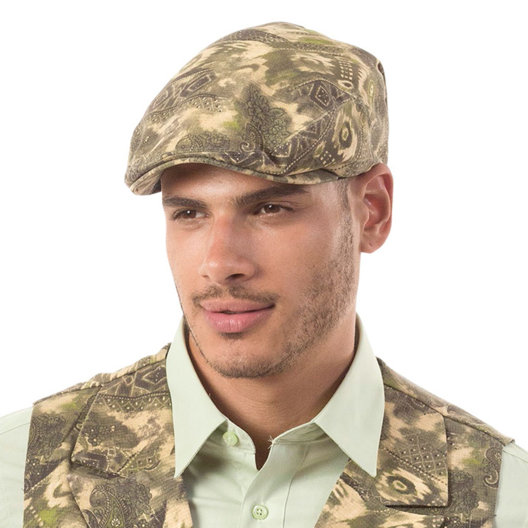 Step up your style game with our designer ivy cap, a blend of contemporary and classic designs. This cap features a unique olive color camouflage pattern, elegantly accented with paisley and checkered details for a distinctive look. Crafted from premium materials and lined for comfort, it's perfect for adding a trendy yet sophisticated touch to any outfit. Ideal for fashion-forward individuals, this cap is available in sizes small to XL, ensuring a perfect fit for everyone.