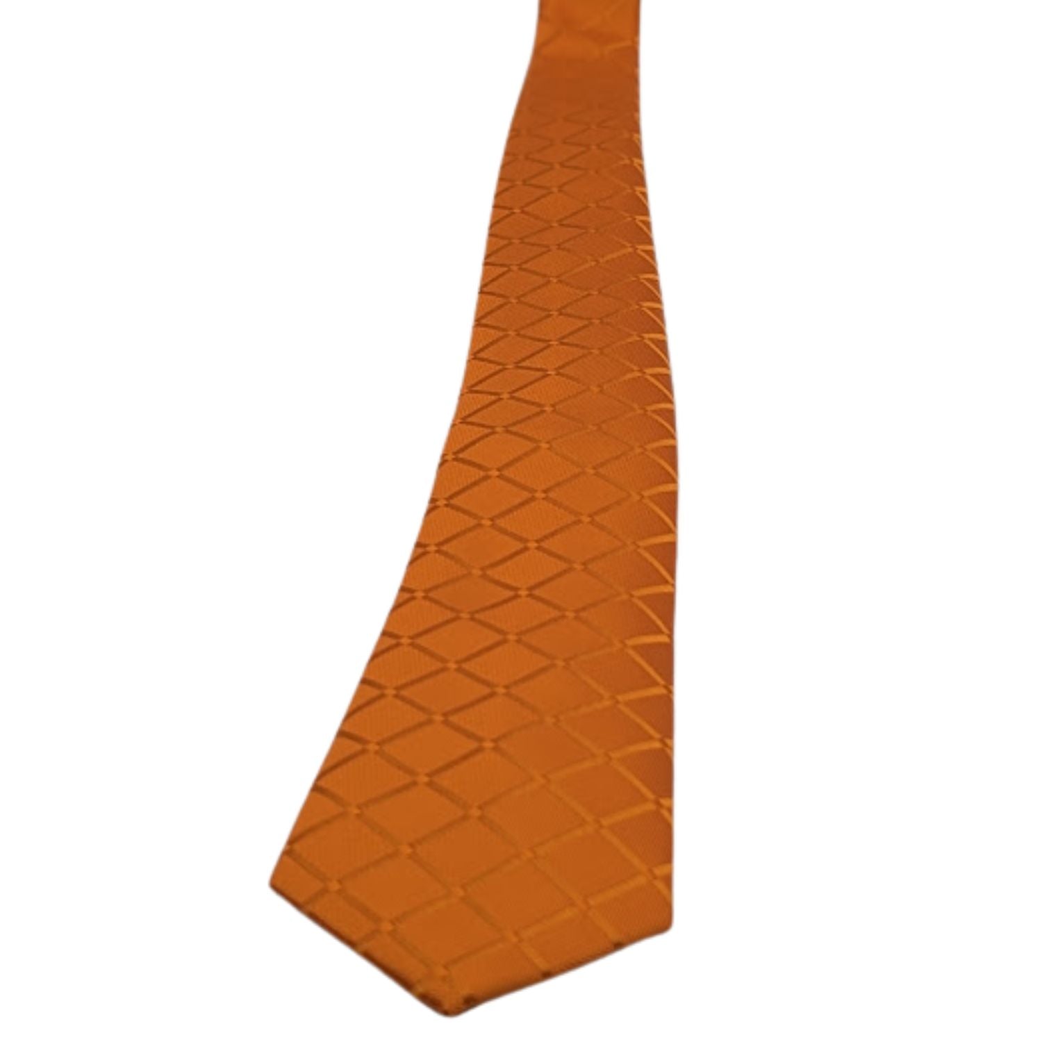 Elevate your ensemble with the Diamond Collection's Orange Tie, a masterpiece of craftsmanship and style. This tie, meticulously crafted from 1200 needle refined polyester, features an intricate diamond pattern that subtly weaves across the fabric, matched perfectly with tonal Orange stitching for a refined, monochromatic look. perfectly proportioned to complement any suit, ensuring a polished and sophisticated appearance for any occasion.