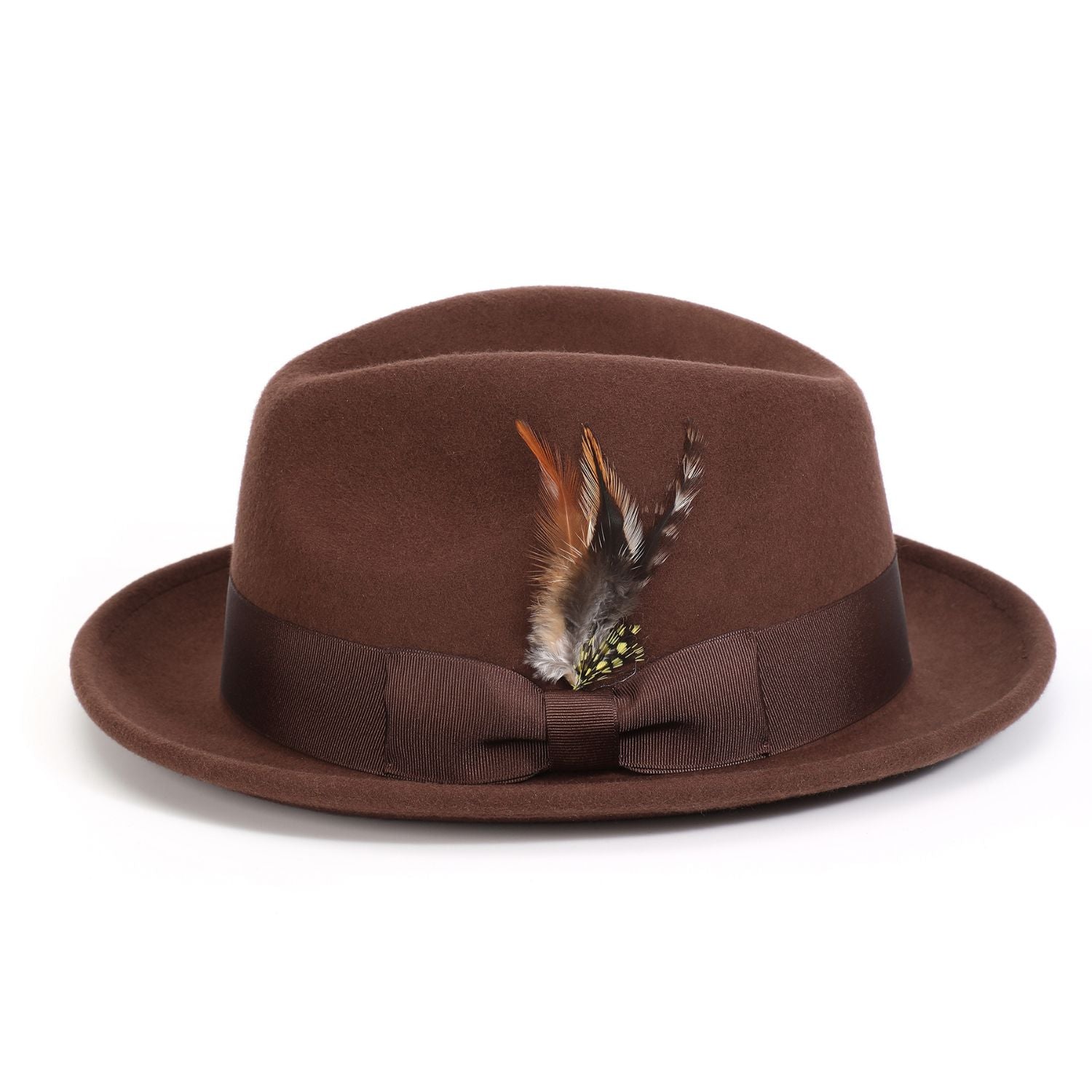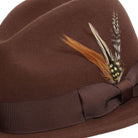 Upgrade your hat game with our Montique Brown Snap Brim Crushable Wool Felt Fedora Hat featuring a stylish feather accent. Crafted from 100% wool, this hat boasts a sophisticated pinch crown design and a classic 2" brim. Complete with a grosgrain ribbon for added charm, this hat exudes elegance and style. With no lining, it's lightweight and comfortable for all-day wear.