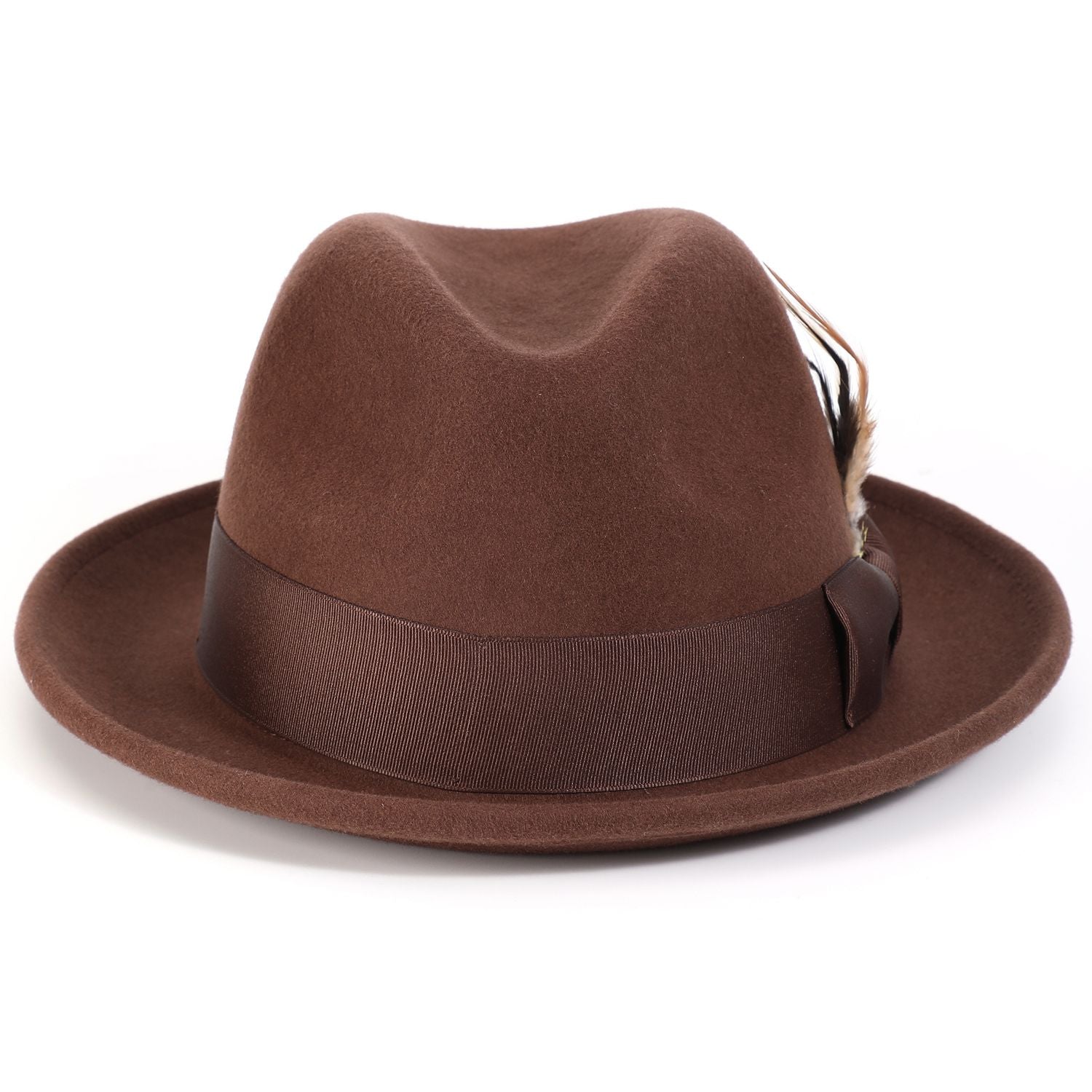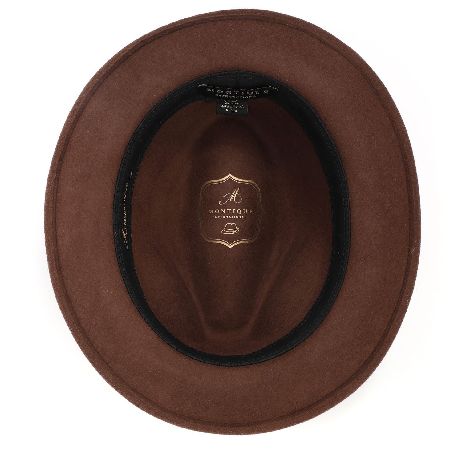 Diamondeo Collection: Montique Men's Brown 2" Snap Brim Crushable Wool Felt Fedora Hat