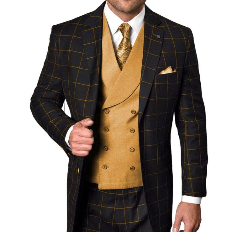 Dominion Collection: Black/Taupe 3-Piece Plaid Modern Fit Suit