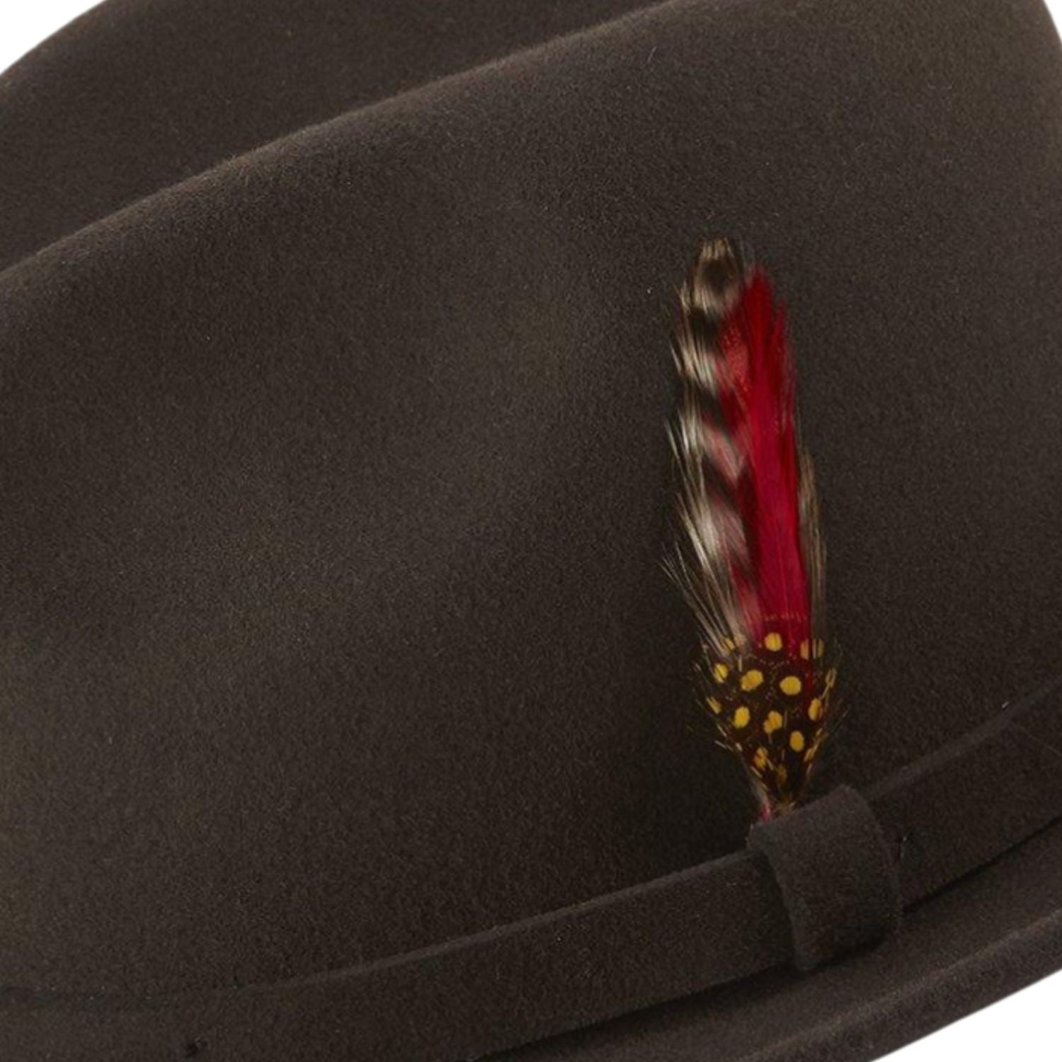 Introducing the Eclipelle Collection's Montique Brown Wool Felt Dress Hat, a true statement piece that embodies sophistication and elegance. Featuring a classic pinch crown and a stylish small felt band, this hat is the epitome of refined fashion. The Brown hue of the hat is both bold and regal, making it a standout accessory for any wardrobe.