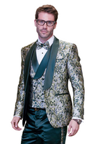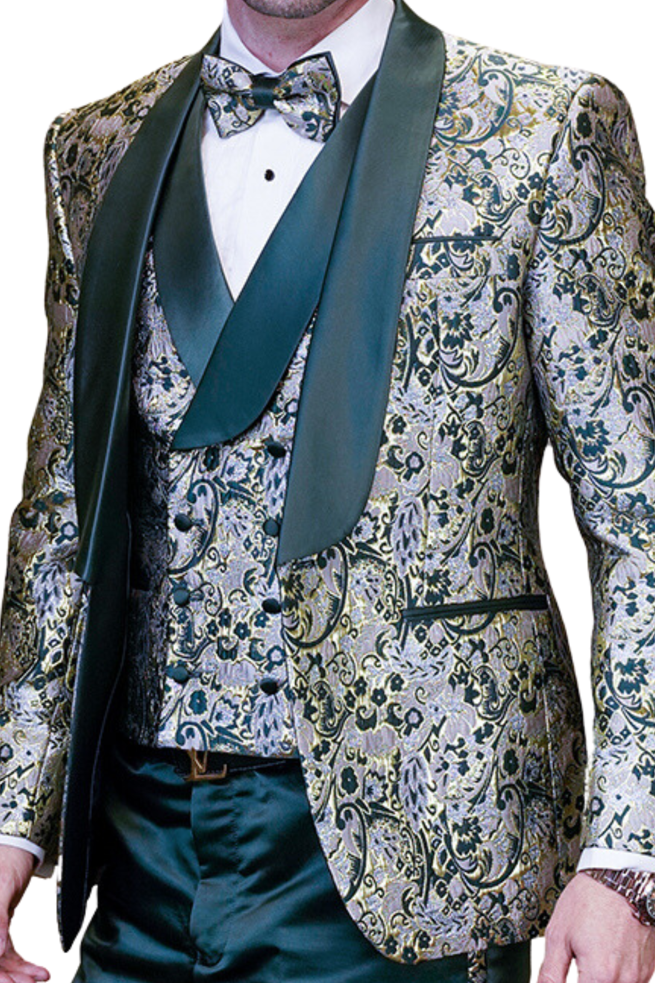 Eclipse Elegance Collection: 3PC Modern Fit Shawl Lapel Tuxedo With Woven Fabric In Hunter