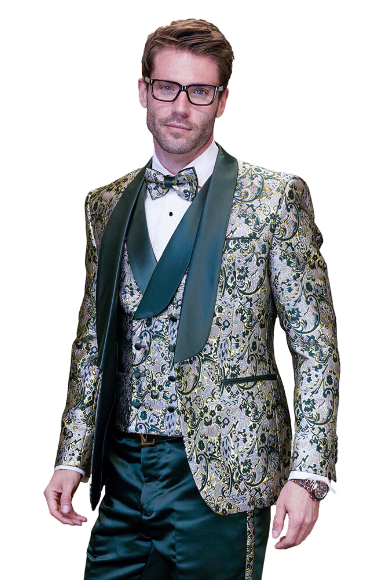 Capture the essence of elegance with our Eclipse Elegance Collection 3PC Shawl Lapel Tuxedo in Hunter. Designed from top-tier woven fabric, this tuxedo is as lavish as it is comfortable. The modern fit silhouette is complemented by a side seam on the pants and a matching bow tie, creating an ensemble that's nothing short of extraordinary.