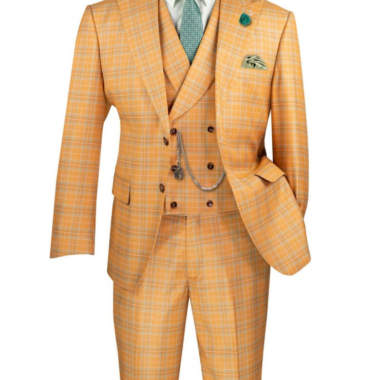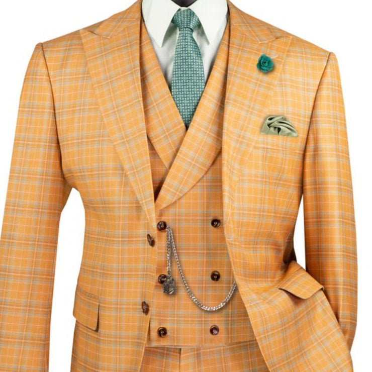 Elegancia Collection: Orange 3 Piece Windowpane Single Breasted Modern Fit Suit