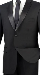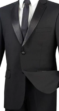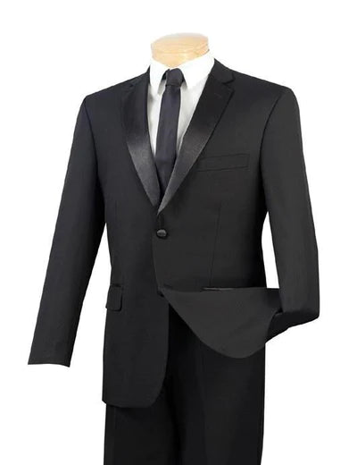 Eleganscape Collection: Black 2 Piece Solid Color with Satin Lapel Single Breasted Regular Fit Tuxedo