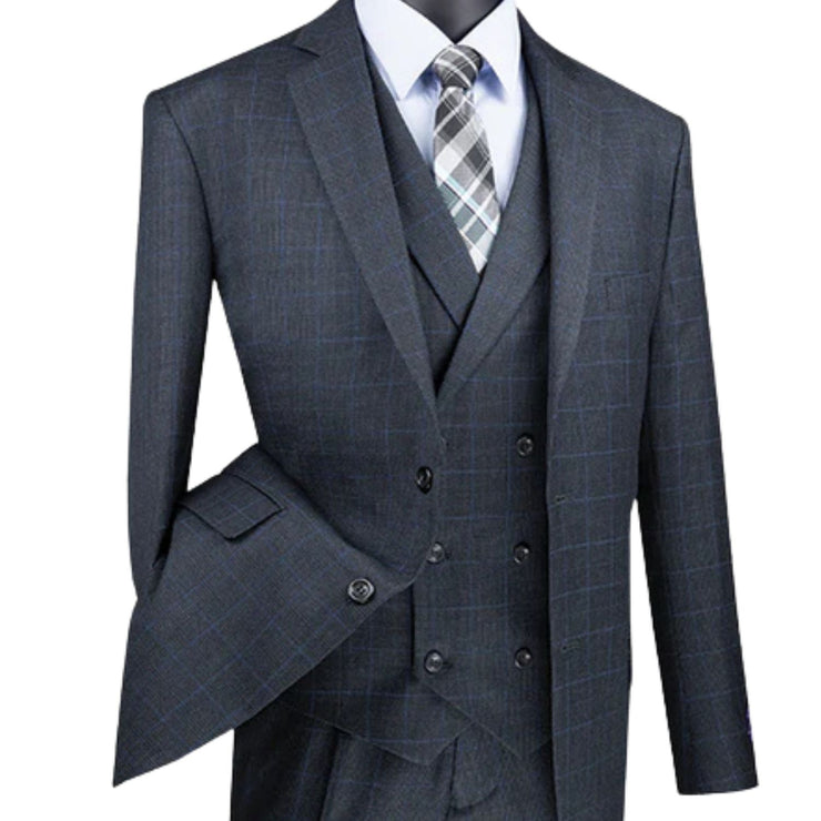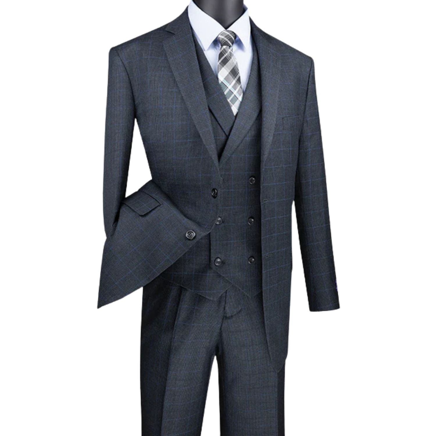 ElegantEcho Collection: Charcoal 3 Piece Glen Plaid Single Breasted Regular Fit Suit - FINAL SALE Size 46R/40 Waist