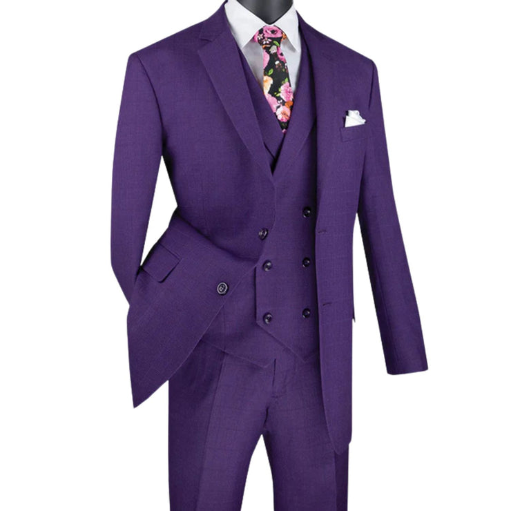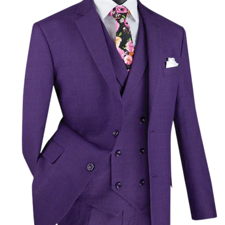 ElegantEcho Collection: Purple 3 Piece Glen Plaid Single Breasted Regular Fit Suit