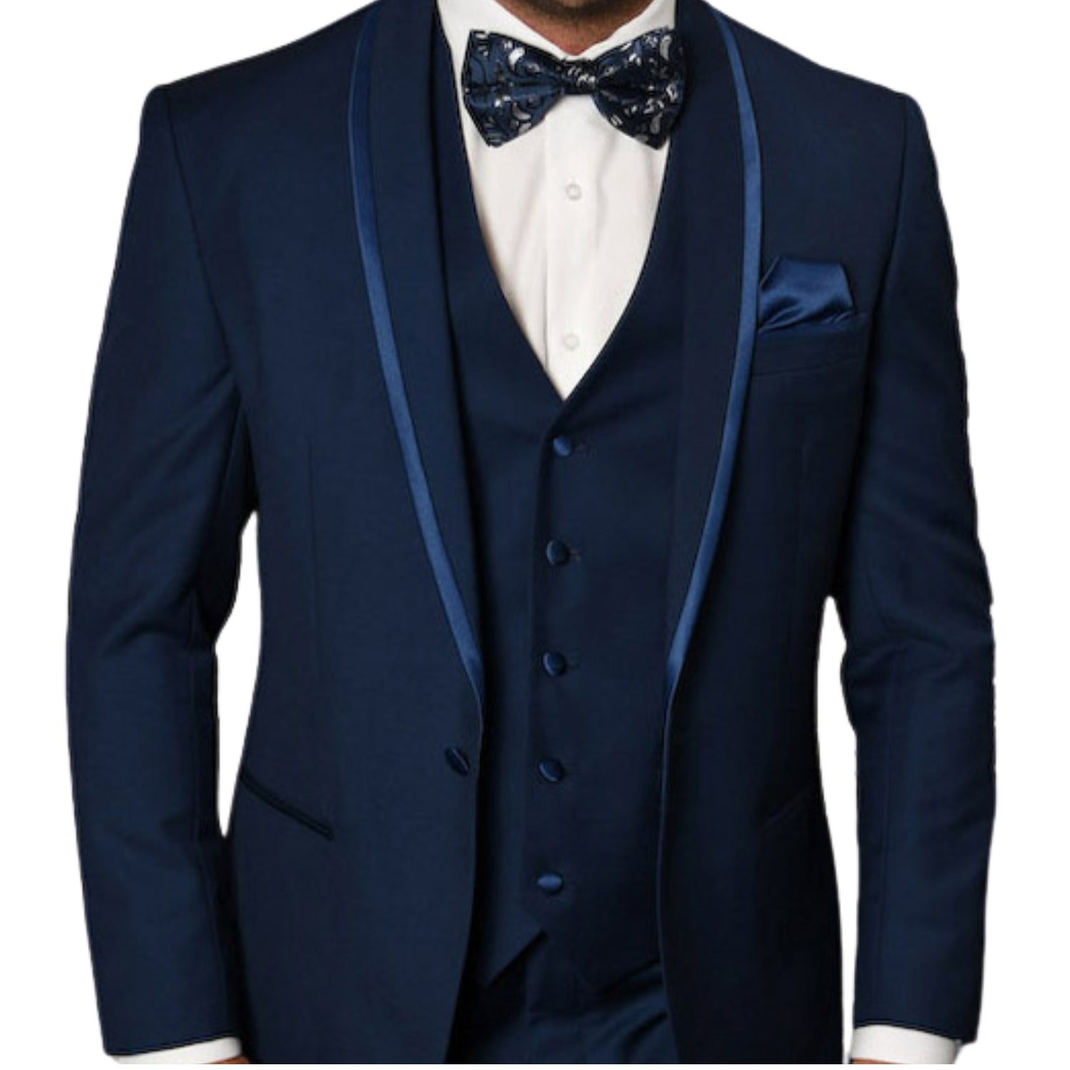 Eliot Collection: 3PC Sapphire Tuxedo with Flat Front Pants and Matching Bow Tie