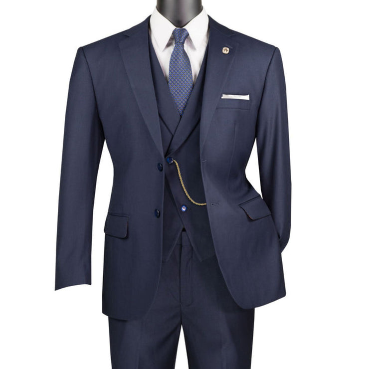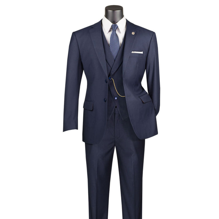 Elite Edit Collection: Navy 2 Piece Solid Color Single Breasted Modern Fit Suit
