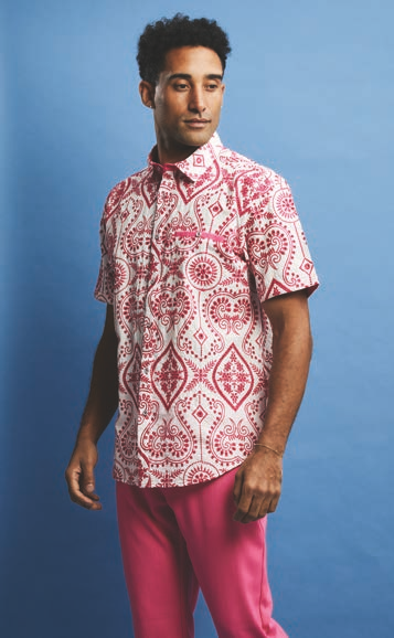 Embroidered Paisley Fabric Design in Pink Short Sleeve Walking Suit - Size 4XL/44 FINAL SALE