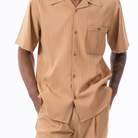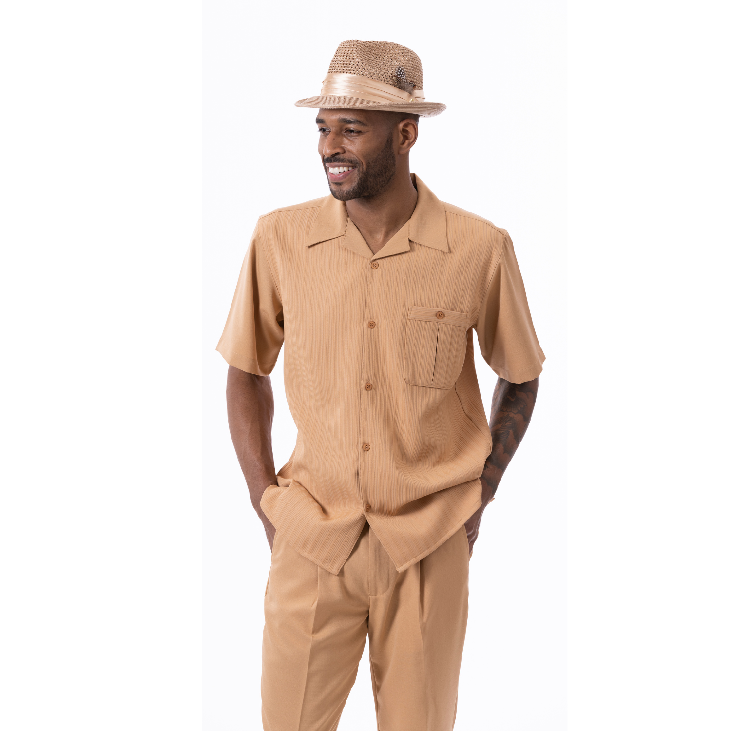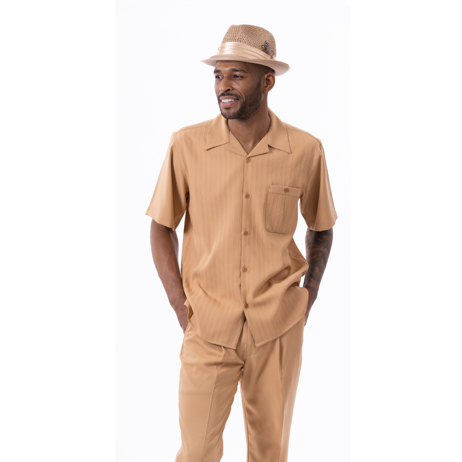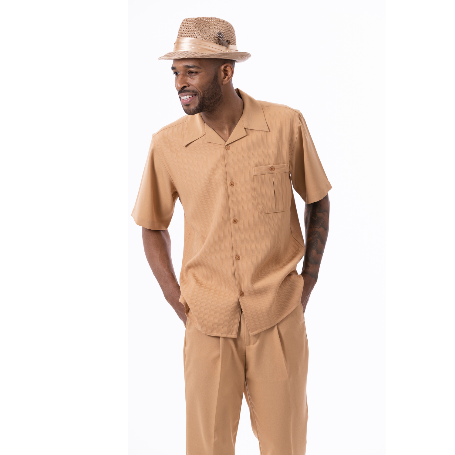 Montique Tan Tone on Tone 2 Piece Short Sleeve Walking Suit 2319