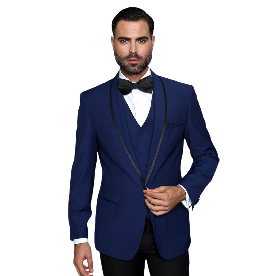 Turn heads in refined style with the Empire Elegance Collection Sapphire 3PC suit. Tailored to perfection in a Tailored Fit and made from 100% exquisite wool, this sapphire set includes a matching bow tie for a fully integrated, high-class look.