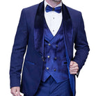 Empyrean Collection: Statement 3-Piece Sapphire Velvet Tuxedo with Gold Accents