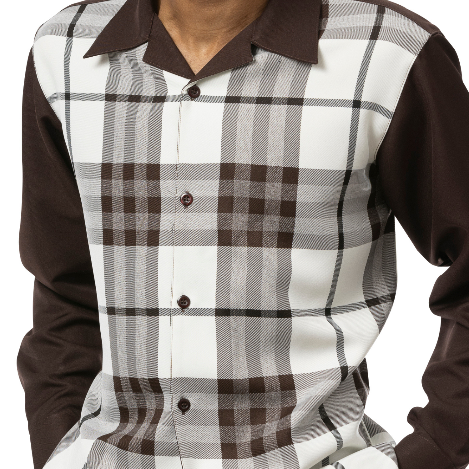 Endowment Collection: Brown Plaid 2 Piece Long Sleeve Walking Suit Set 2355