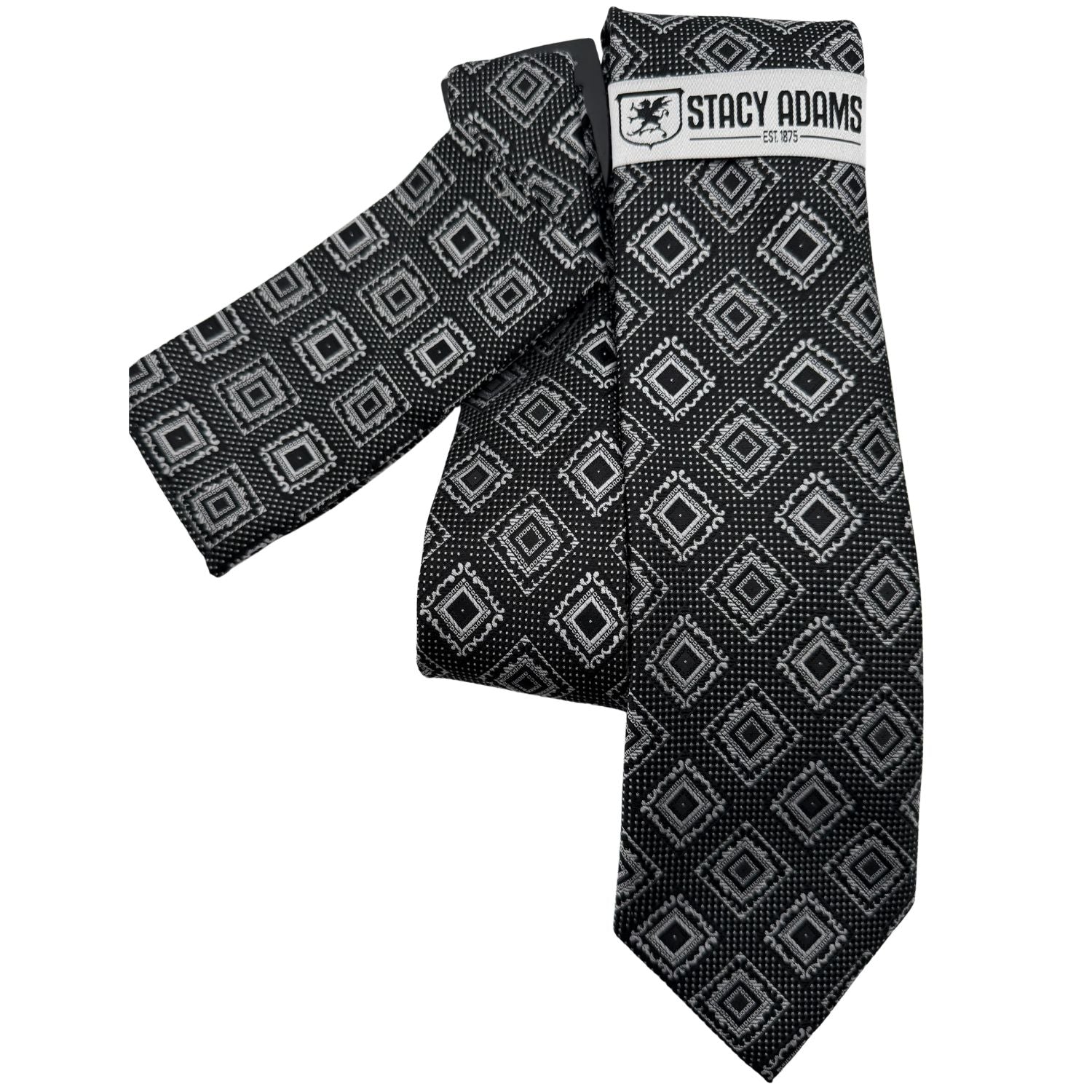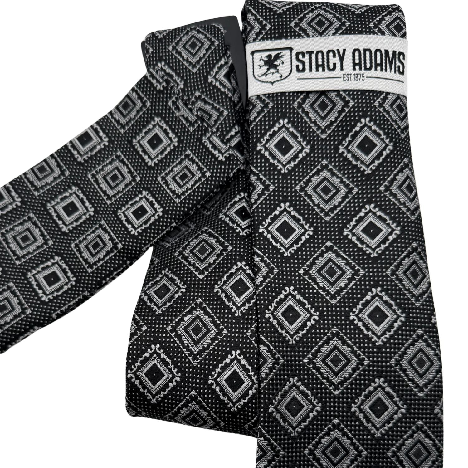 Embrace a modern, organic aesthetic with the Equinox Collection by Stacy Adams. This meticulously coordinated set features a black base enriched with a structured grid of geometric diamond motifs in silver. Designed for the gentleman who appreciates subtle sophistication, this duo offers a refreshing alternative to traditional formal colors, making it an ideal choice for garden weddings, spring galas, or distinguished business attire.
