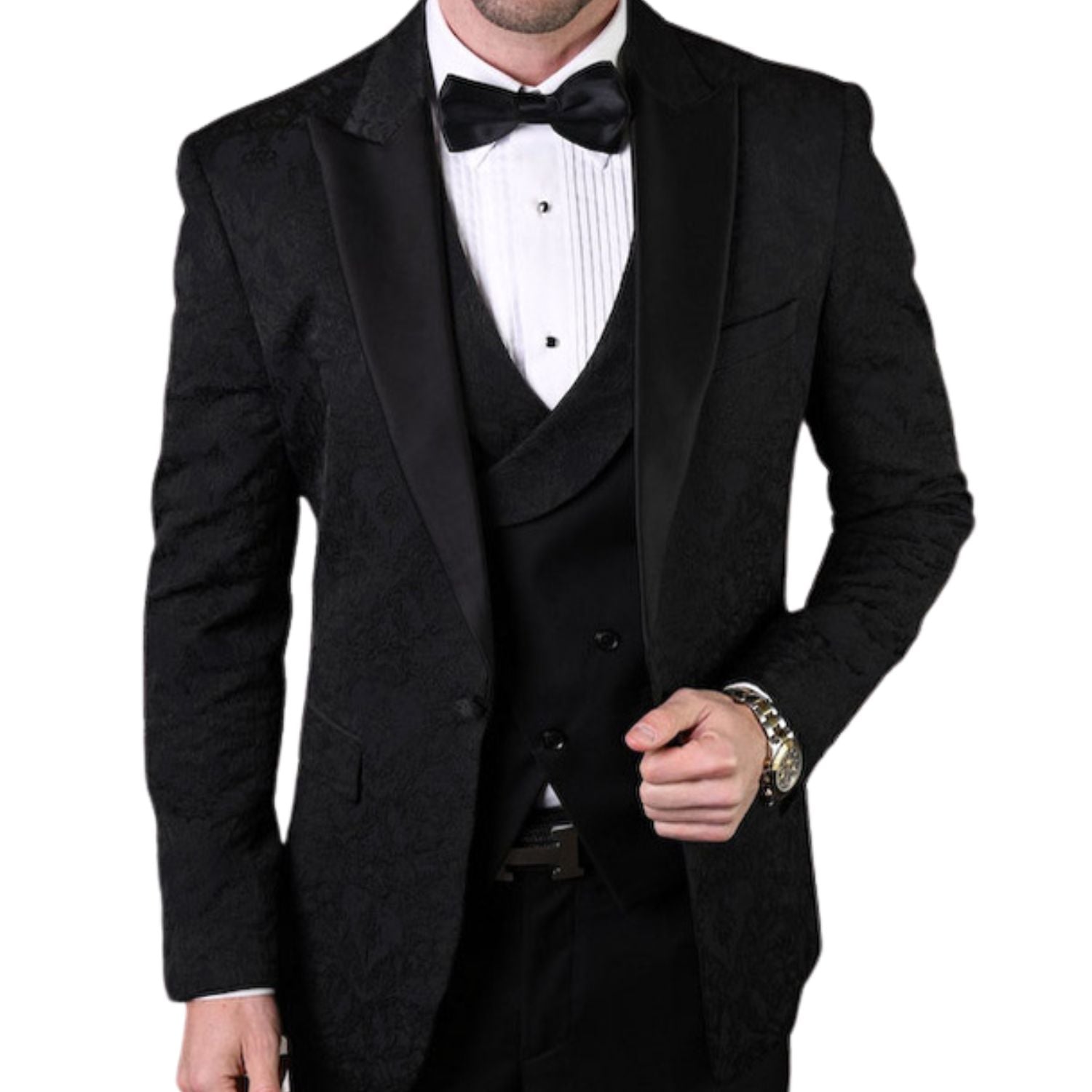 Eridanus Collection: Men's Black Peak Lapel 3 Piece Tuxedo