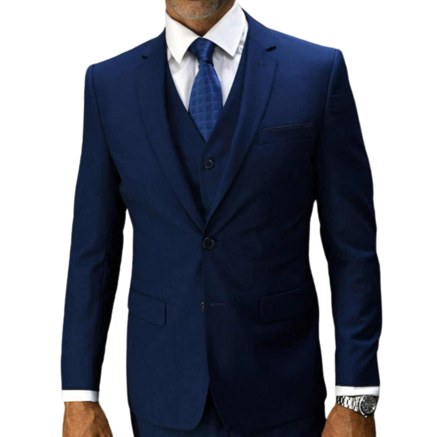 Eskimo Collection: Men's Ultra Slim Fit Stretch Fabric 3PC Suit In Sapphire