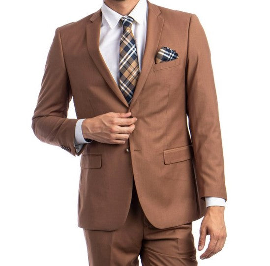 Essential Elegance Collection: Men's Two-Piece Suit Slim Fit with Notch Lapel In Caramel - Slim Fit