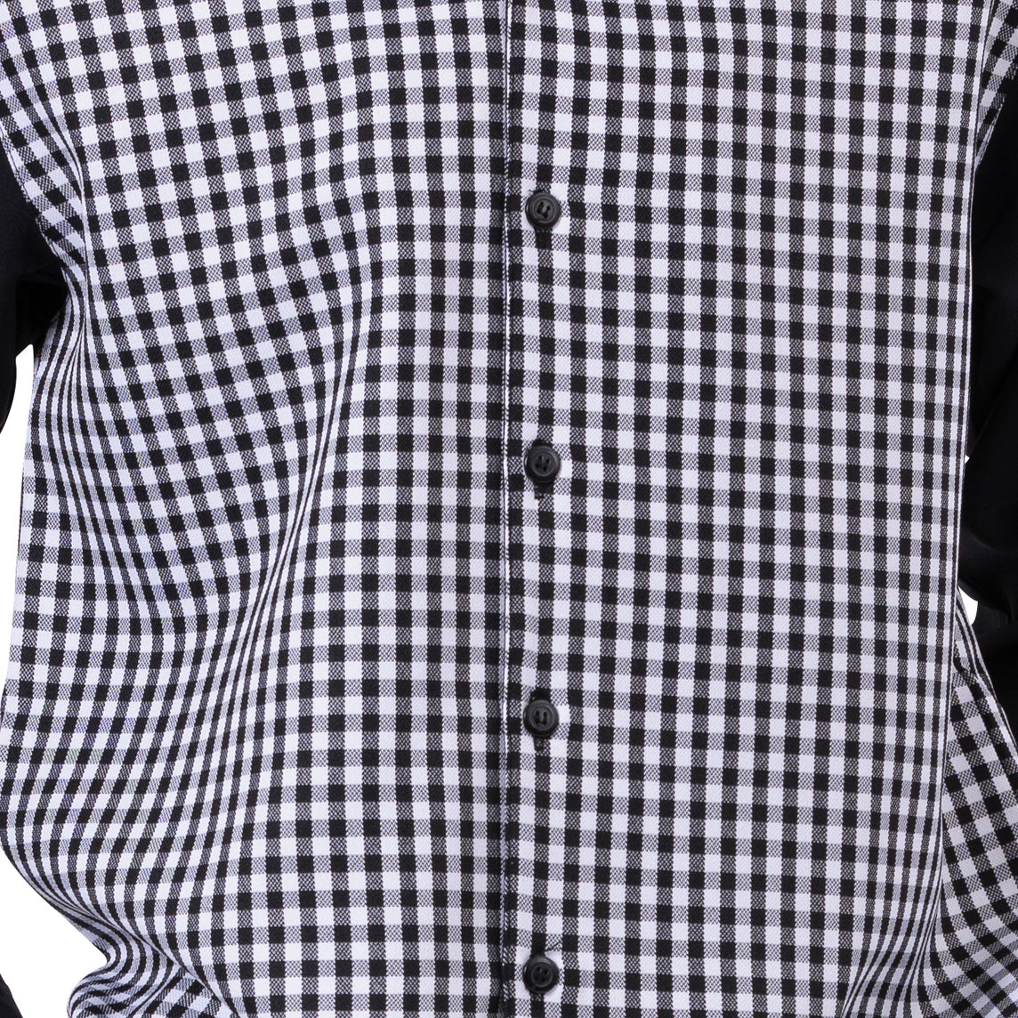 Eulogized Collection's Black Chequered Design 2 Piece Long Sleeve Walking Suit Set Long Sleeve Walking Suit Collar Chequered Design Button Closure Shirt.