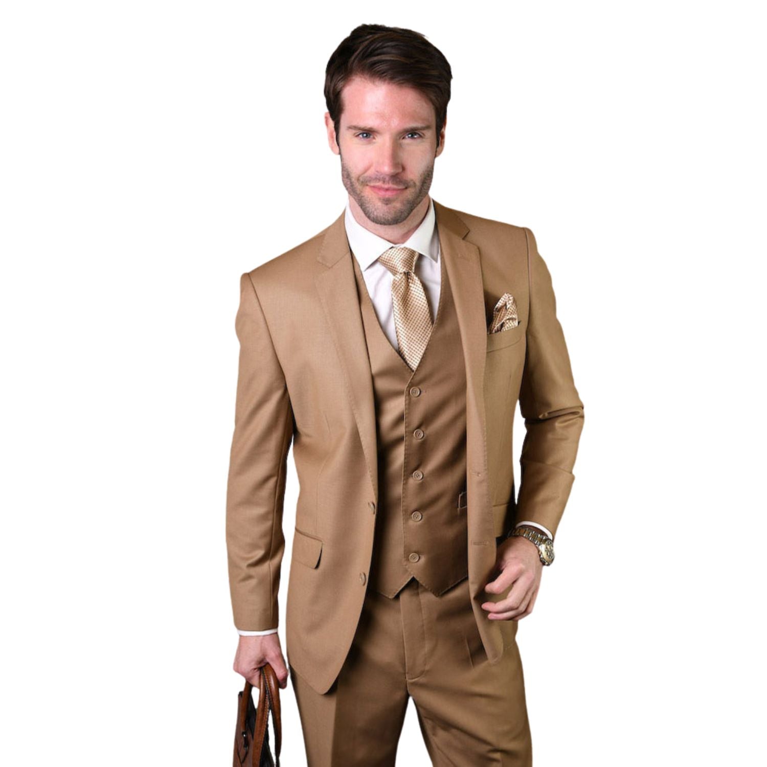 Europa Collection: Caramel 3-Piece Modern Fit Suit – Super 180's Italian Wool - FINAL SALE Size 40R/34 Waist