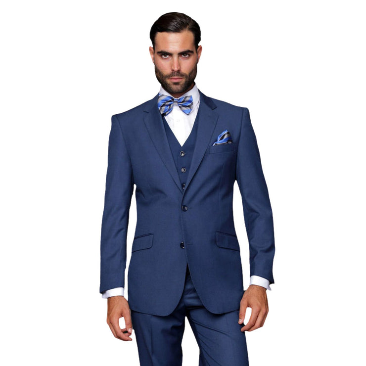 Europa Collection: Indigo 3-Piece Modern Fit Suit – Super 180's Italian Wool - FINAL SALE Size 54L/49 Waist