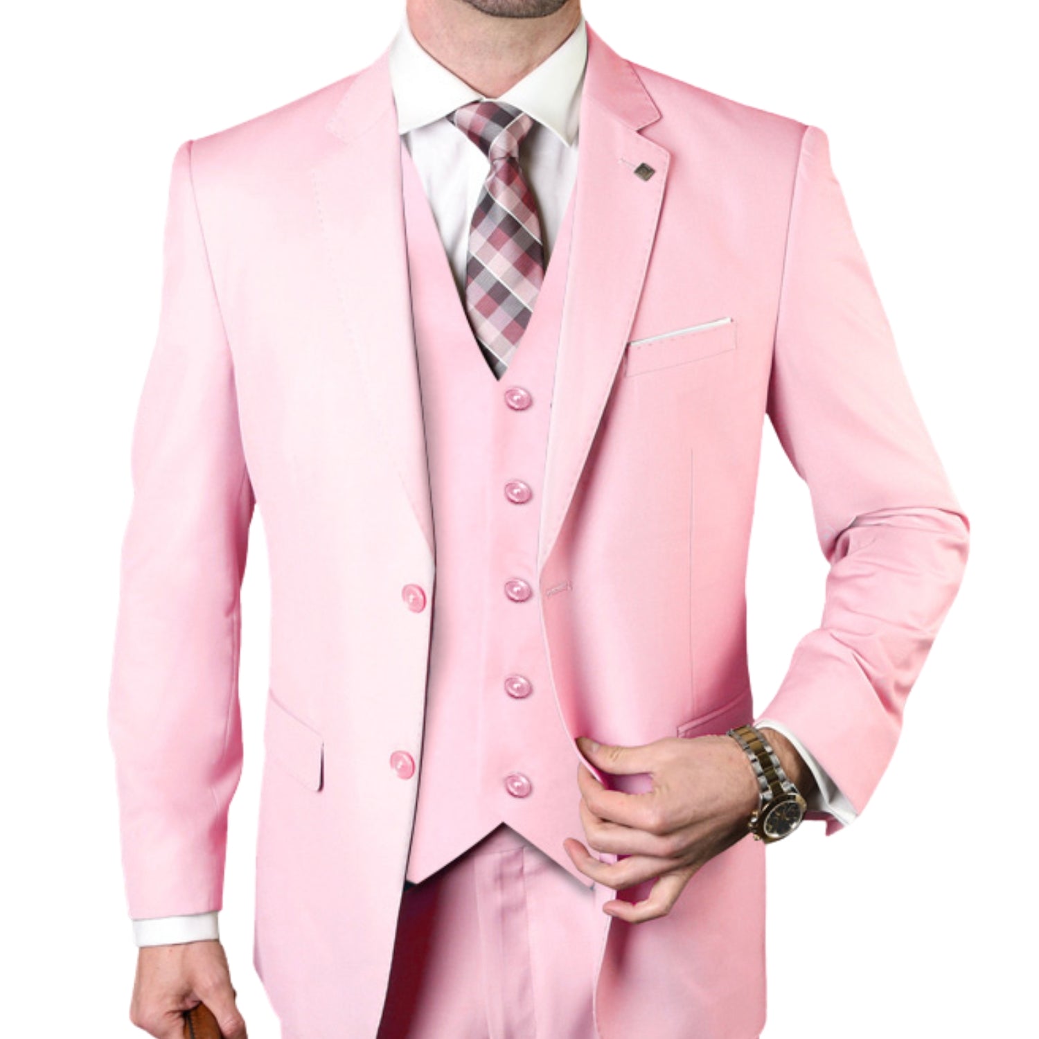 Europa Collection: Pink 3-Piece Modern Fit Suit – Super 180's Italian Wool