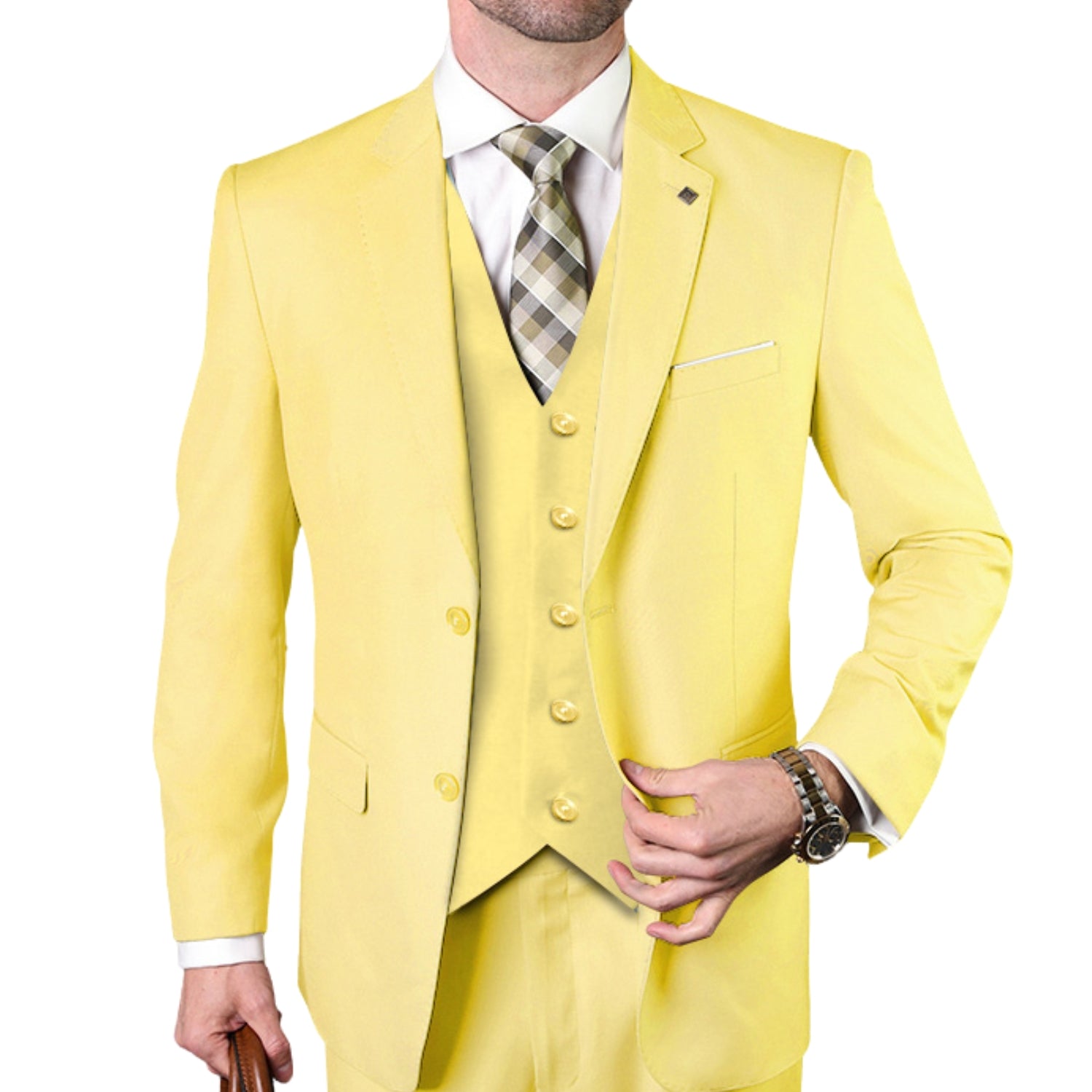 Europa Collection: Yellow 3-Piece Modern Fit Suit – Super 180's Italian Wool