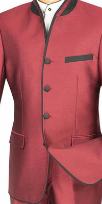 FabricFantasy Collection: Wine 2 Piece Banded Collar Sharkskin Single Breasted Slim Fit Suit