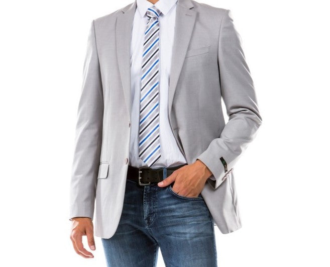 Refresh your suit collection with the Fornido Light Grey Jacket. This suit's lighter shade of grey and modern fit offer a contemporary twist on traditional suiting. With its notch lapel, two-button closure, and neatly designed flap pockets, this suit is ideal for spring and summer events or as a stylish office ensemble.