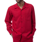 Elevate your wardrobe with the Foundation Collection's Men's Red Solid 2 Piece Walking Suit, a testament to timeless style and comfort. This leisure suit combines a long-sleeve shirt with matching trousers, both crafted in a solid Red color that exudes sophistication and versatility. Perfect for a range of occasions, from casual gatherings to more formal events, this walking suit offers a polished look without sacrificing comfort.