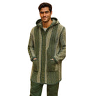 Frost Trails Collection: Hooded Wool Blend Jacket Sweater In Olive