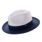 Galanza Collection: Montique Navy Two-tone Pinch Fedora With Matching Grosgrain Ribbon- Wide Brim H47