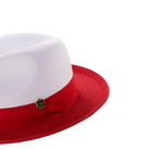 Galanza Collection: Montique Red Two-tone Pinch Fedora With Matching Grosgrain Ribbon- Wide Brim H47