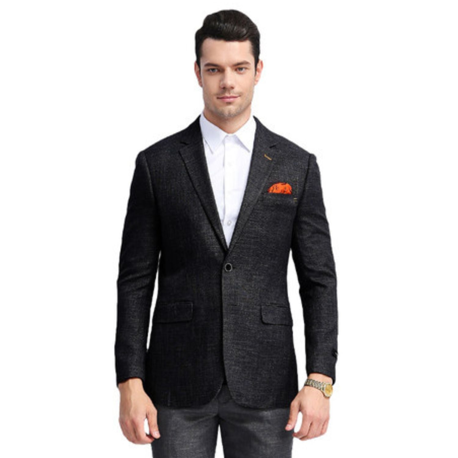 Elevate your style with our Galaxy Garnish Collection: Black Solid Color Slim Fit Blazer. This sleek and modern blazer features a classic notch lapel, 2-front buttons, and a solid design for timeless appeal. With flap pockets and a chest pocket for added functionality, it's both stylish and practical. The interior pic-stitching adds a touch of sophistication.