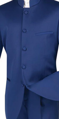 Gentry Glam Collection: Navy 2 Piece Banded Collar Single Breasted Regular Fit Suit