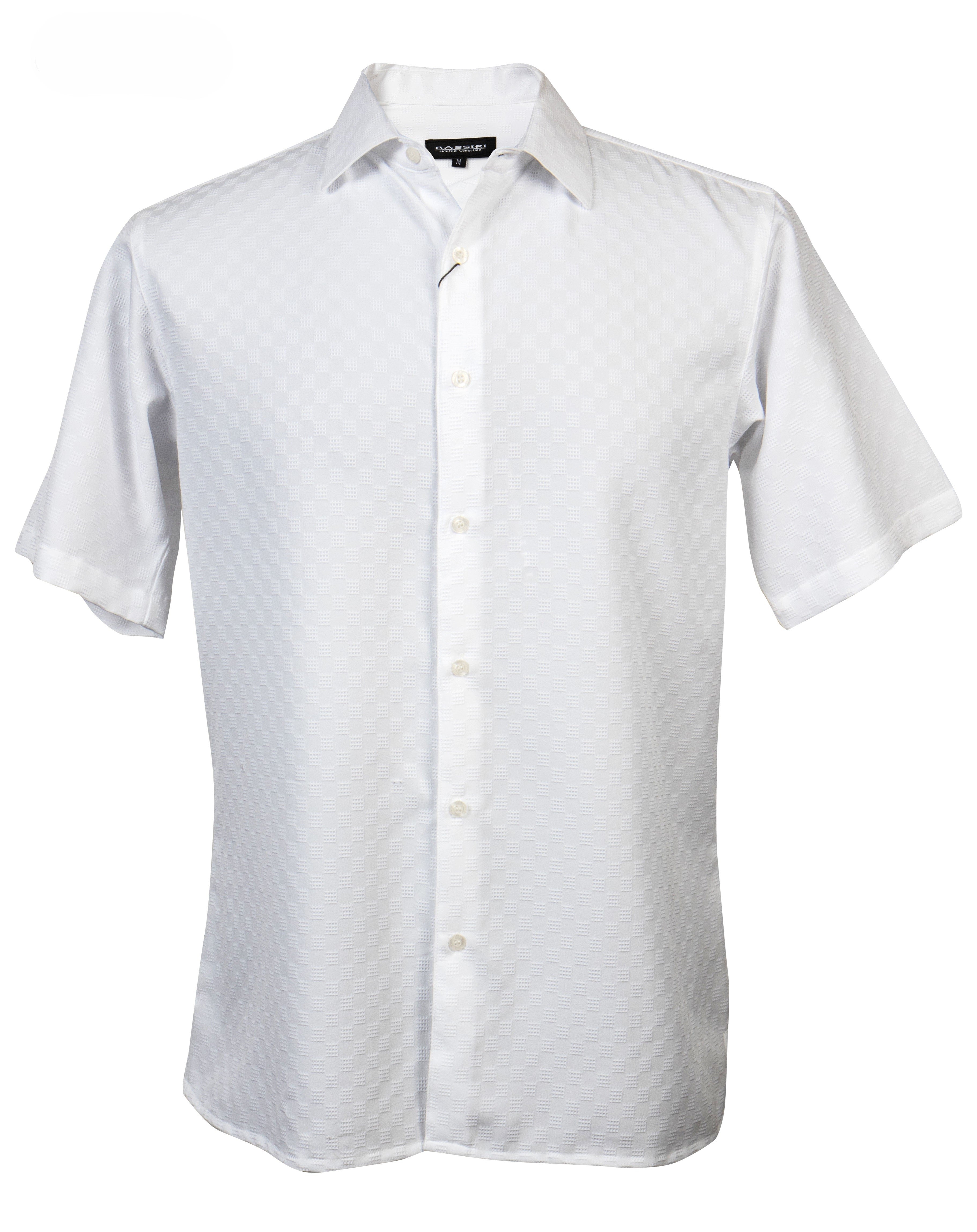 GeoSoft Collection White Geometric Microfiber Short Sleeve Shirt – Full Cut