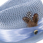 Be daring and fearless this summer in the Montique's Carolina Solid Color Pinch Braided Fedora with matching satin ribbon. Perfectly airy for hot summer days, this stylish fedora is outfitted with a feather accent and Montique Pin. Show off your daring personality and challenge the heat in style with the Polyester Blend material and 2" brim size, with size XL an additional $5 charge.