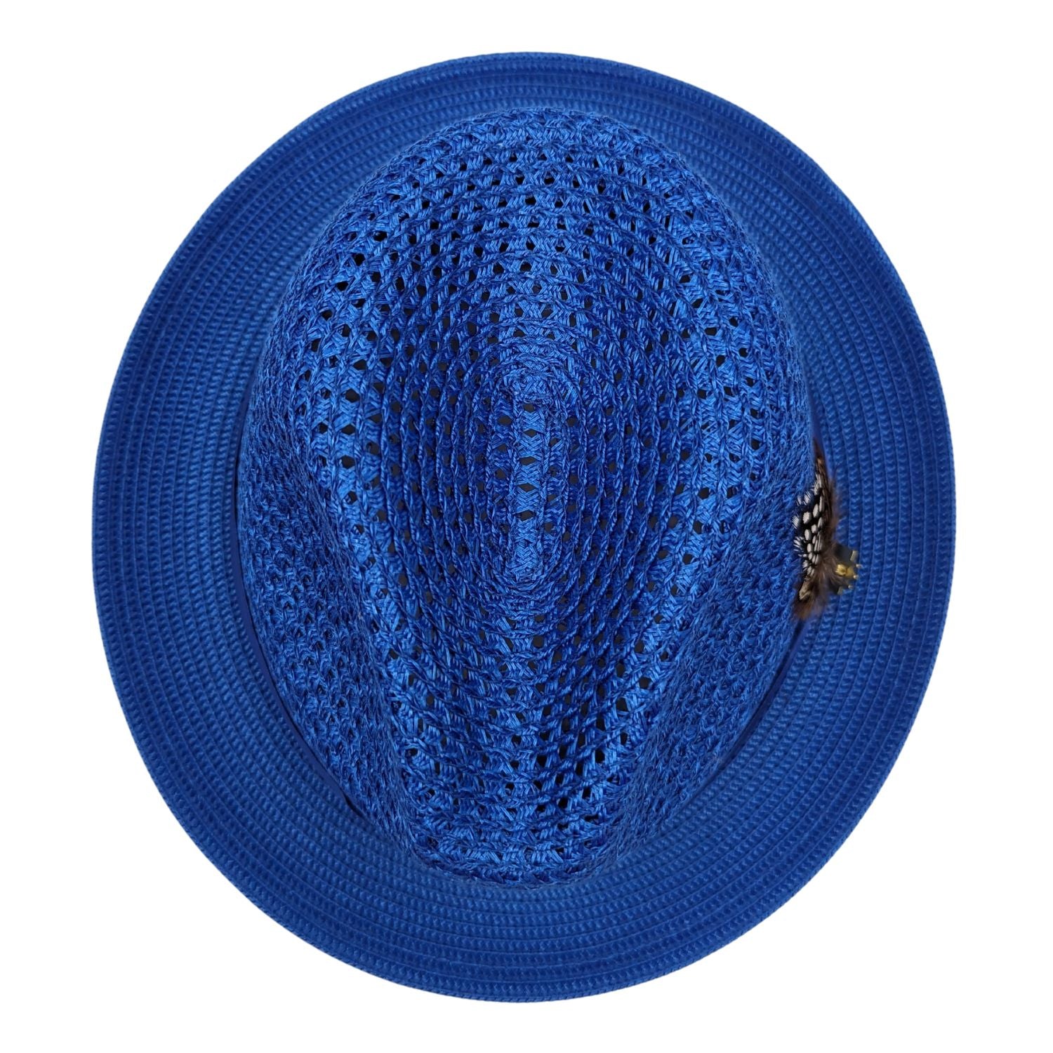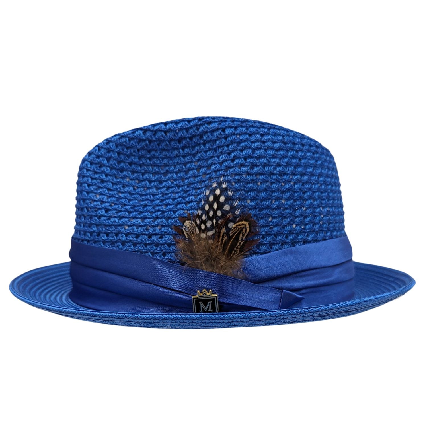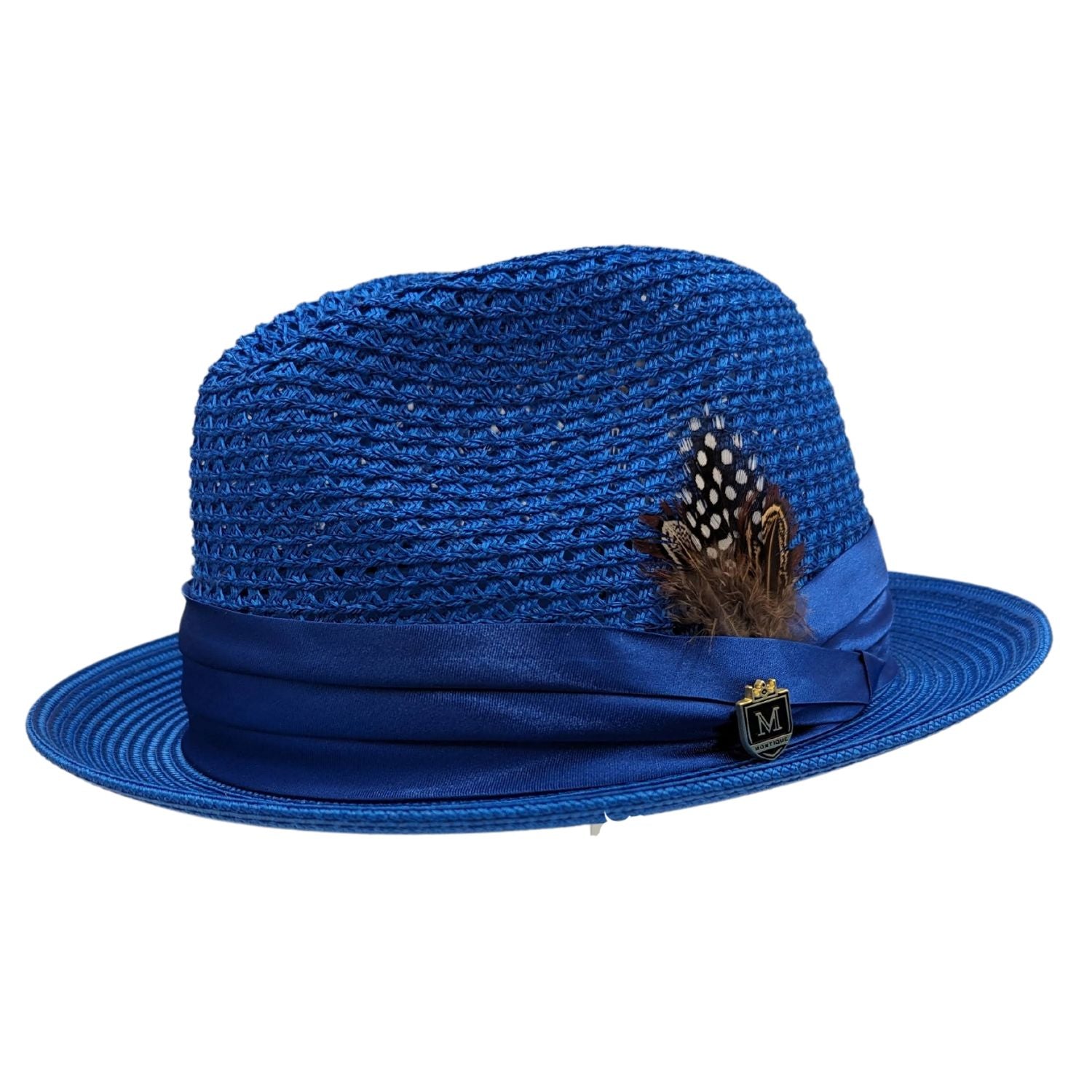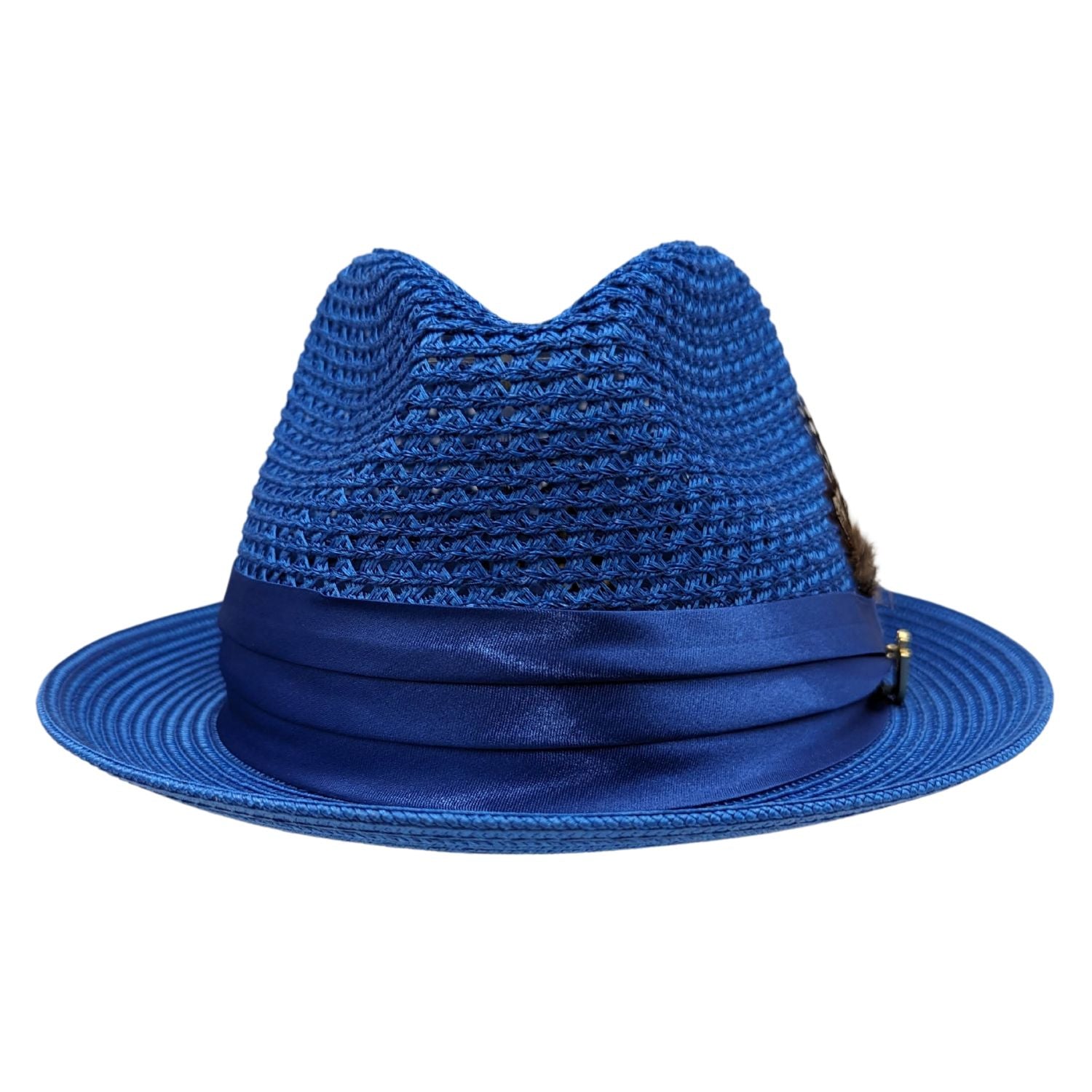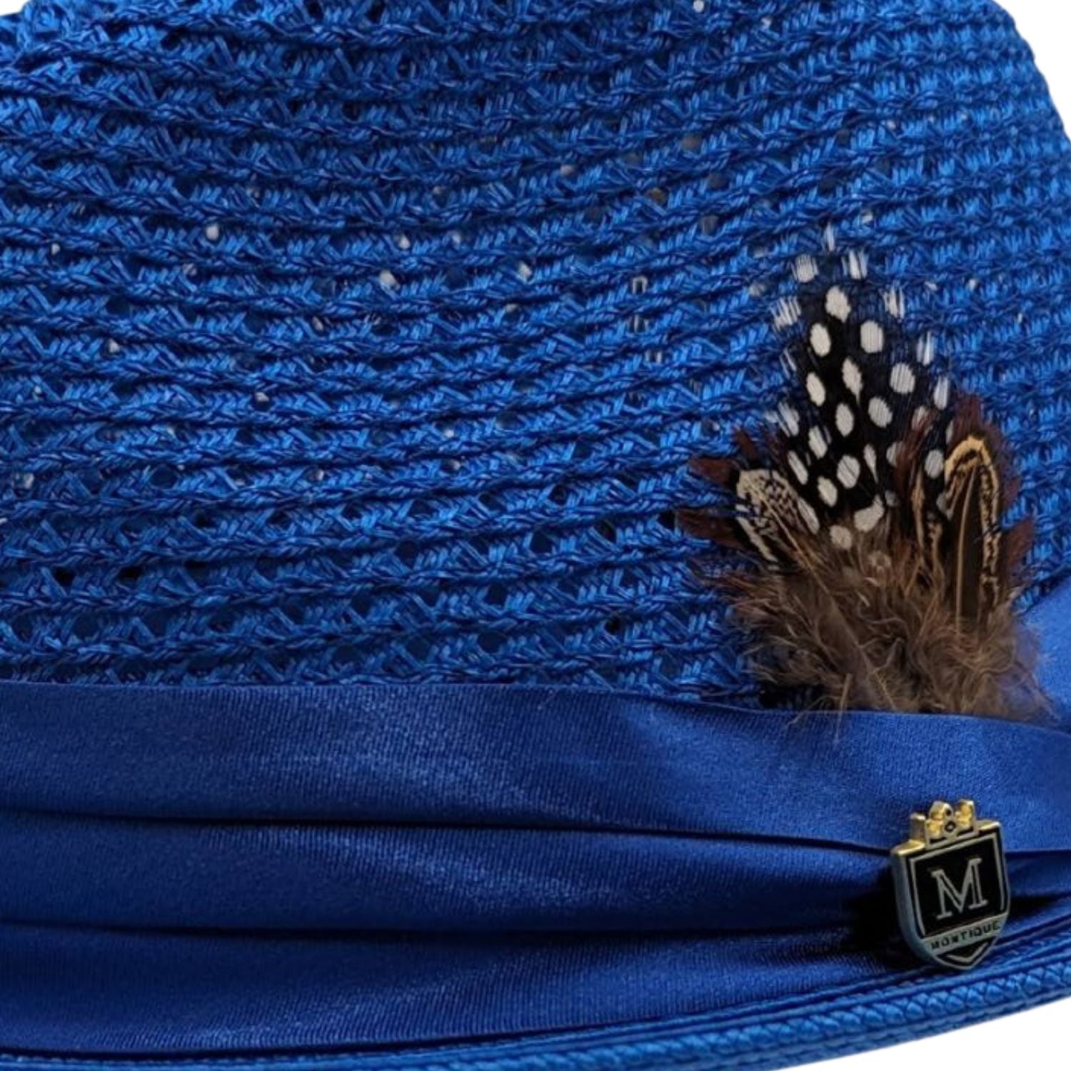 Glossaric Collection: Montique Cobalt Solid Color Pinch Mesh Braided Fedora With Matching Satin Ribbon Hat