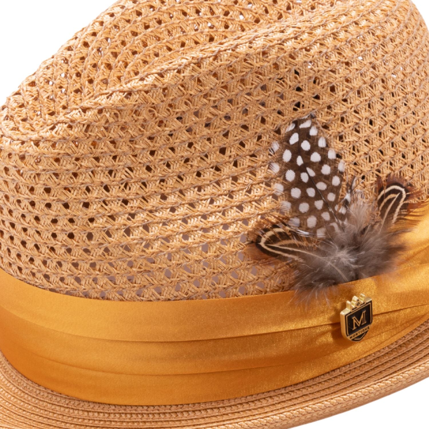 Glossaric Collection: Montique Cognac Solid Color Pinch Mesh Braided Fedora With Matching Satin Ribbon Hat