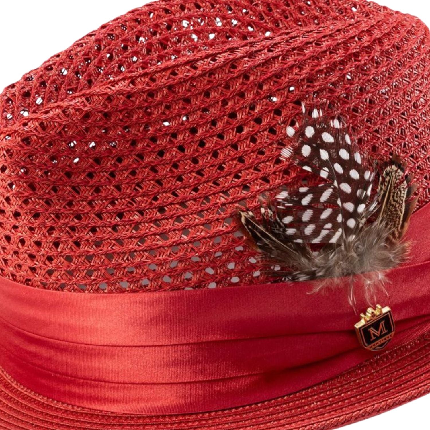 Glossaric Collection: Montique Crimson Solid Color Pinch Mesh Braided Fedora With Matching Satin Ribbon Hat
