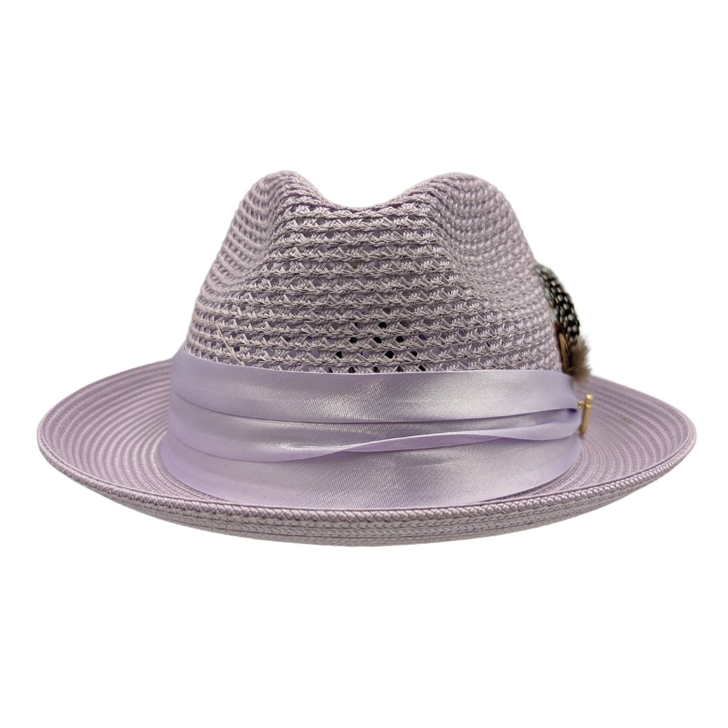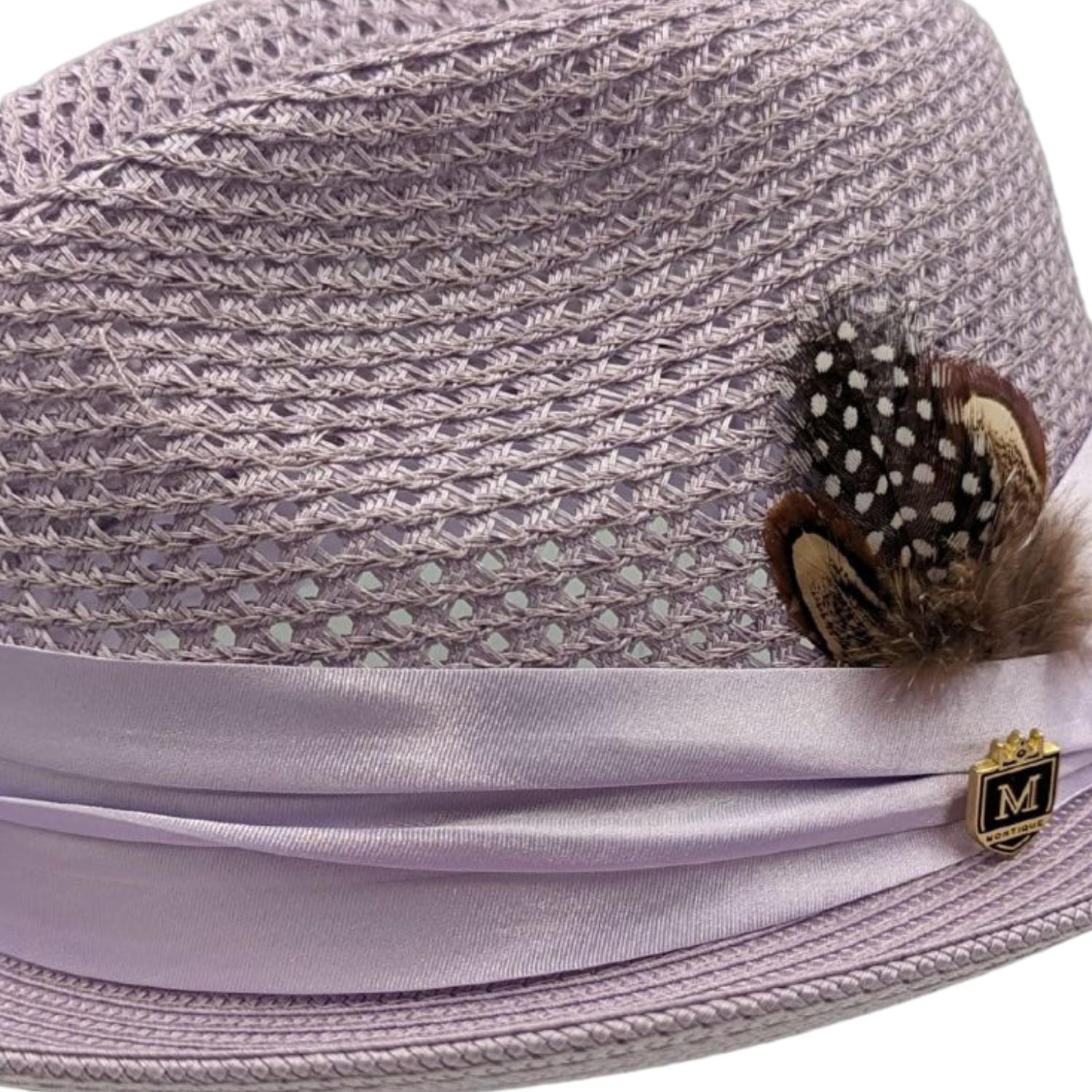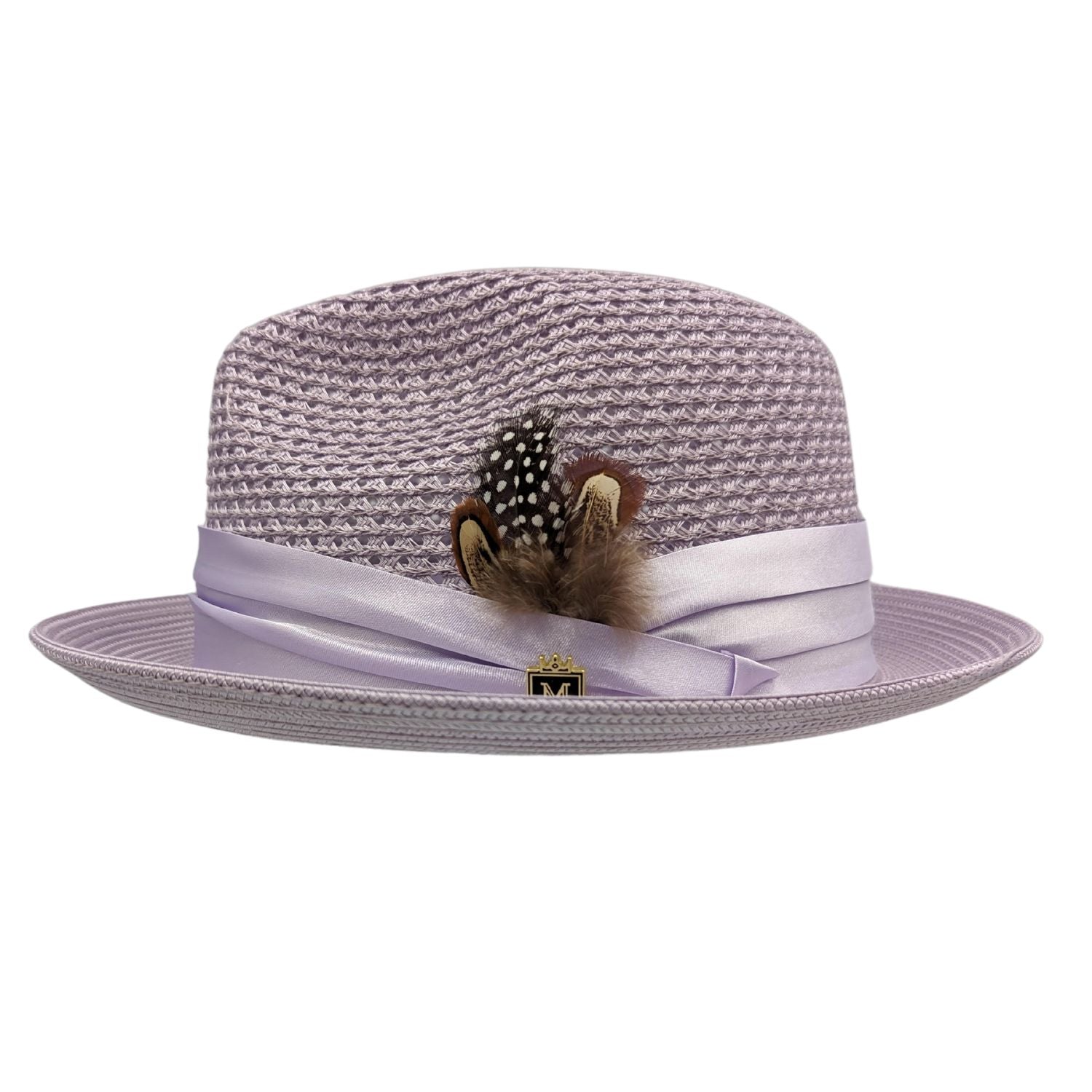 Glossaric Collection: Montique Lavender Solid Color Pinch Mesh Braided Fedora With Matching Satin Ribbon Hat