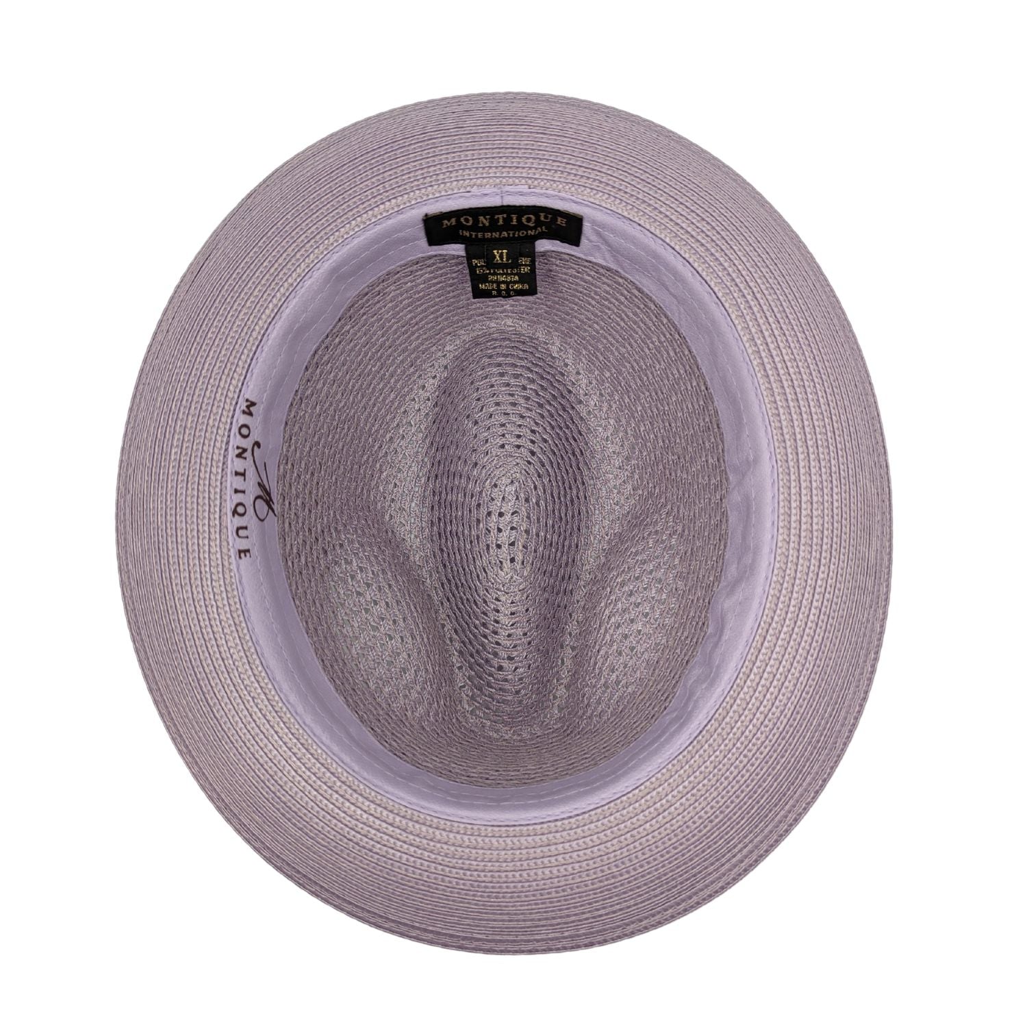 Be daring and fearless this summer in the Montique's Lavender Solid Color Pinch Braided Fedora with matching satin ribbon. Perfectly airy for hot summer days, this stylish fedora is outfitted with a feather accent and Montique Pin. Show off your daring personality and challenge the heat in style with the Polyester Blend material and 2" brim size, with size XL an additional $5 charge.