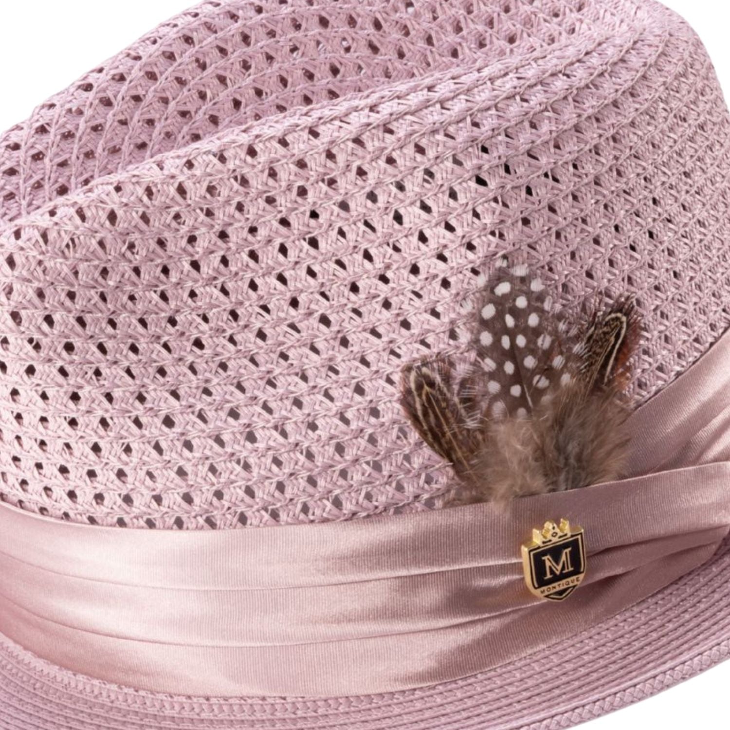 Glossaric Collection: Montique Mauve Solid Color Pinch Mesh Braided Fedora With Matching Satin Ribbon Hat